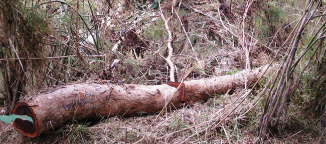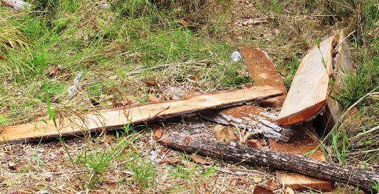 Lâm tặc dùng cưa máy “cưa, xẻ” lấy đi những hộp gỗ vuông vức, bỏ lại hiện trường những phách bìa và cành ngọn